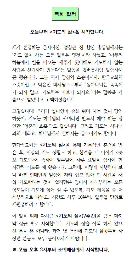 오늘부터 <기도의 삶>을 시작합니다.