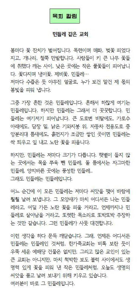 민들레 같은 교회