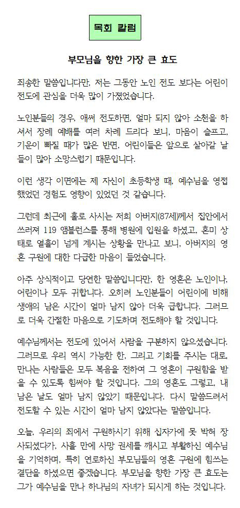 | 이전글 | 하나님의 풍성한 은혜를 받으려면 | 운영자 | 2026.04.11 | 0 | 20 |