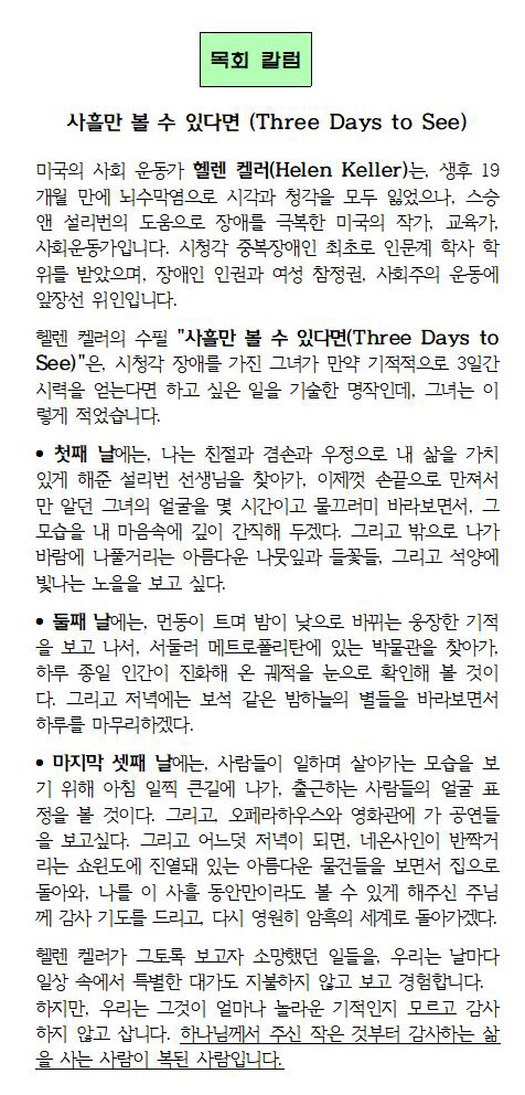 사흘만 볼 수 있다면 (Three Days to See) 운영자 2026-04-18 추천 0 댓글 0 조회 4 http://hangajok.net/bbs/bbsView/69/6626238 첨부파일 (0) 0