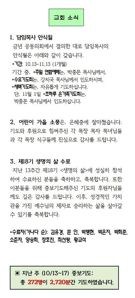 2025,10,19 교회소식 운영자 2025-10-18 추천 0 댓글 0 조회 7 http://www.hangajok.net/bbs/bbsView/15/6570907 첨부파일 (0) 0