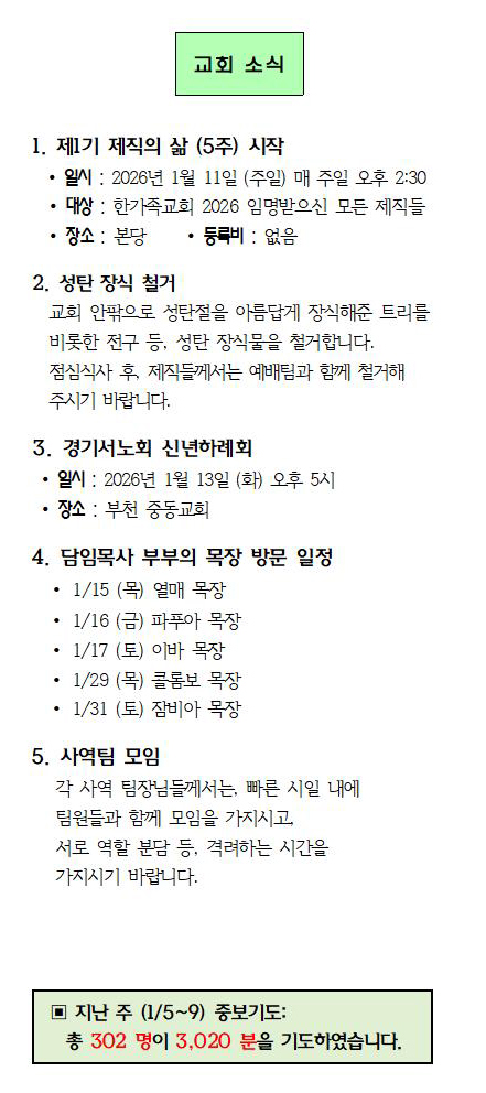 2026.01.11 교회소식